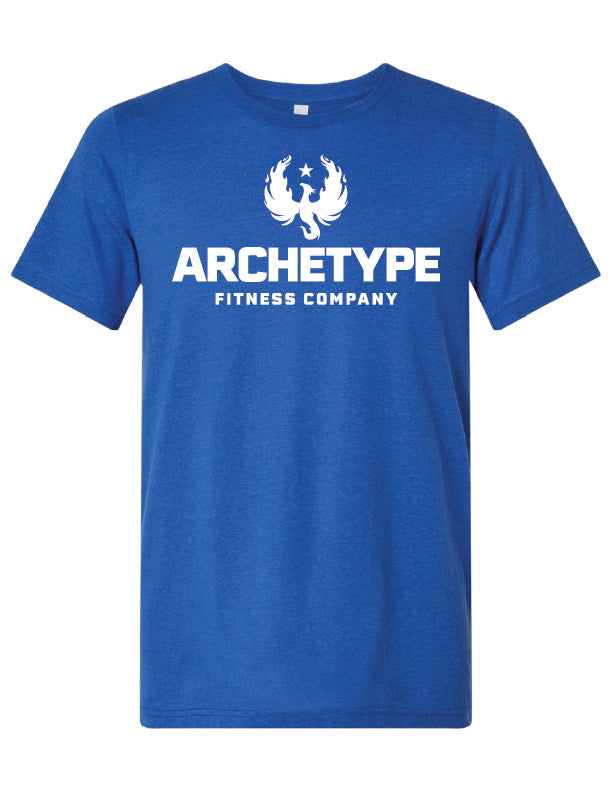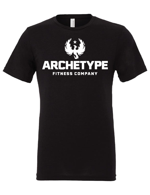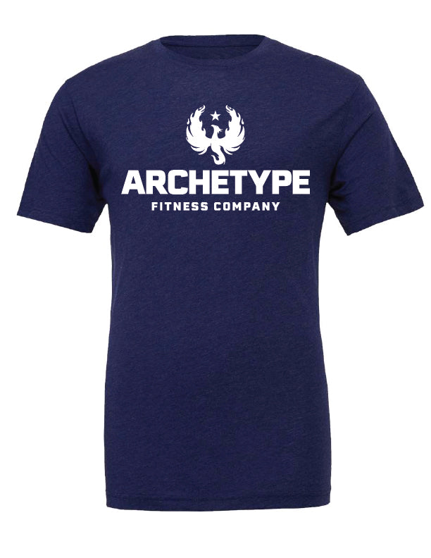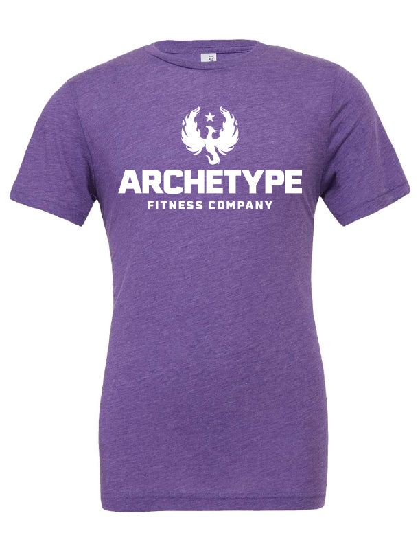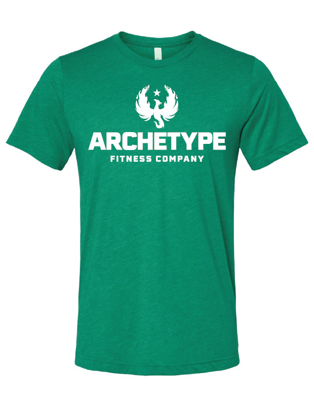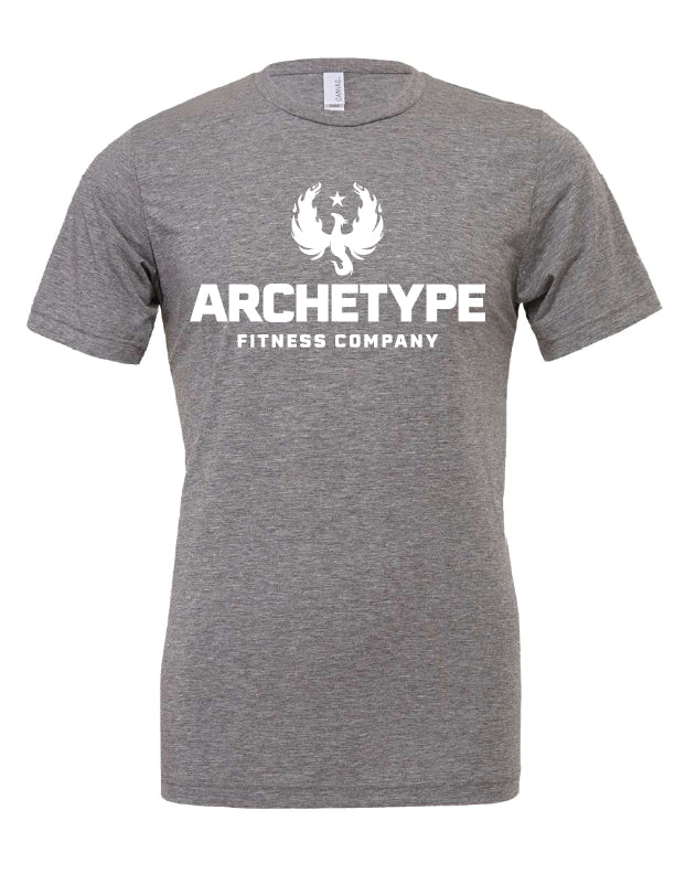 This is a tri-blend tee with our stacked logo. Durable and soft.